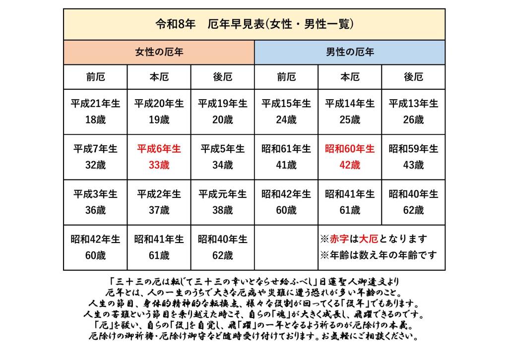 令和8年 厄年早見表