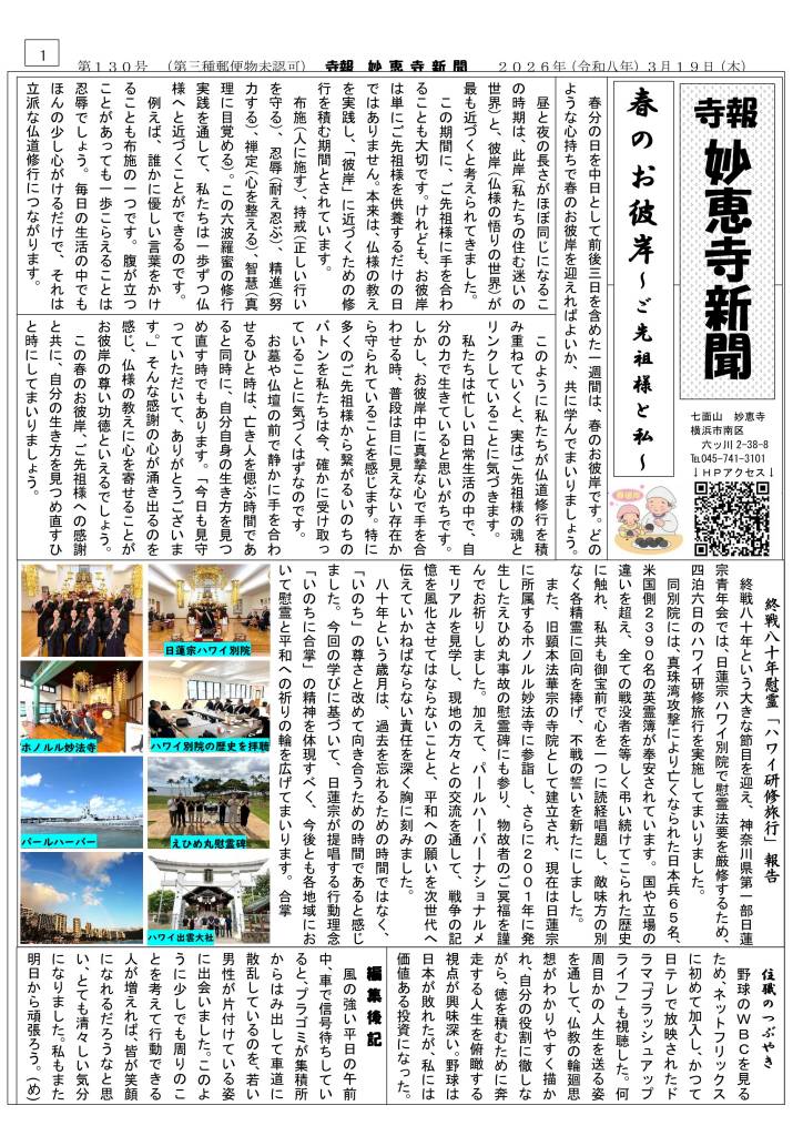 さて、今月も妙恵寺新聞が完成いたしました。