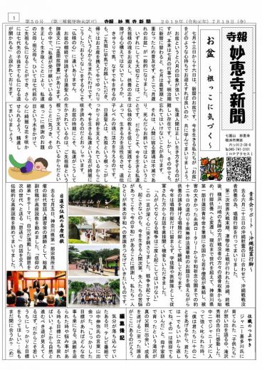 この度、日蓮宗新聞社から年4回発行の教誌『正法(しょうぼう)』158号(令和元年/夏 お盆号)に当山妙…