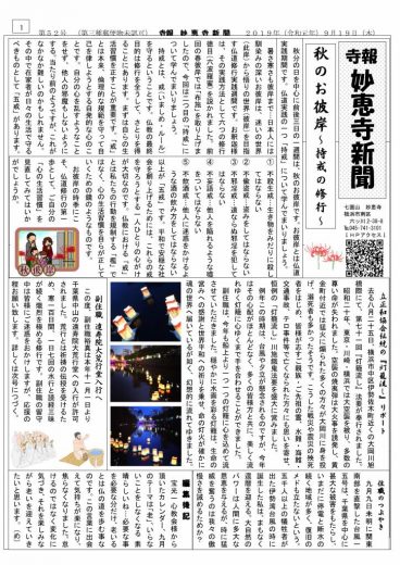 妙恵寺新聞第52号「秋彼岸~持戒の修行~」