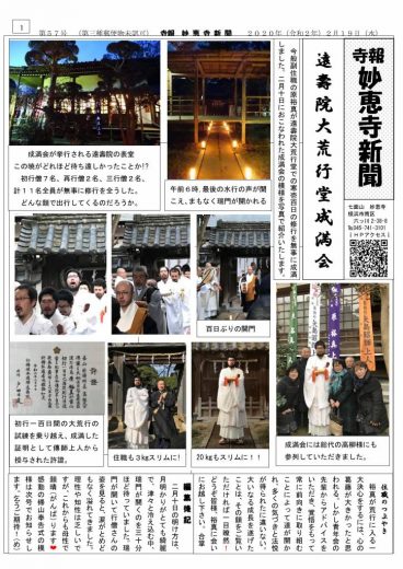 妙恵寺新聞第57号「遠寿院大荒行堂成満会」