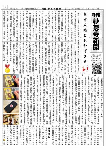 妙恵寺新聞第75号「東京五輪とおかげさま」