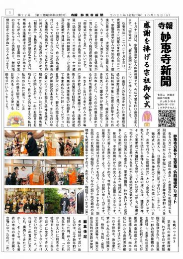 妙恵寺新聞第77号「感謝を捧げる宗祖御会式」