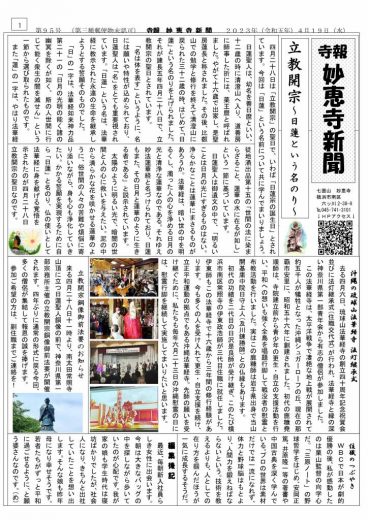妙恵寺新聞第95号「立教開宗~日蓮という名のり~」