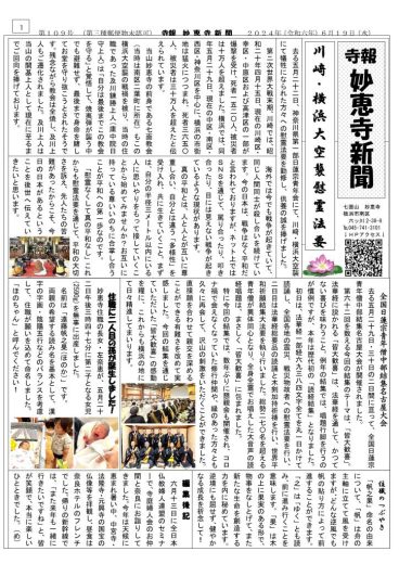 妙恵寺新聞第109号「川崎・横浜大空襲慰霊法要」