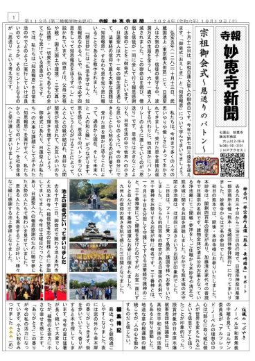 妙恵寺新聞第113号「宗祖御会式~恩送りのバトン~」