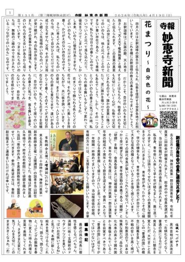 こんにちは、副住職です。 やわらかな春風に心華やぐ季節となりましたが、皆様いかがお過ごしでし…
