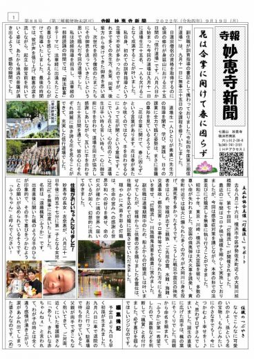 妙恵寺新聞第93号「釈尊涅槃会~お釈迦様が亡くなられた日~」」