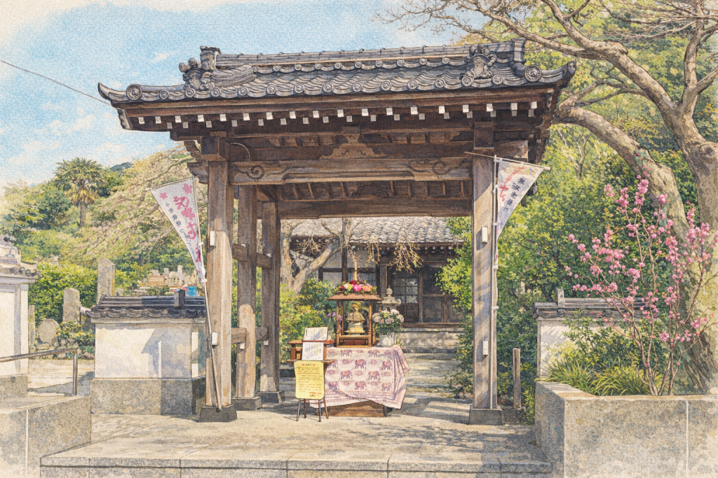 横須賀の交通の要衝・堀ノ内。その駅前の喧騒を背に、静かに時を刻むのが日蓮宗「照東山 泉福寺」です。その創建は明徳元年(一三九〇年)と伝えられ、開山以来、六百年余にわたってこの地の精神的な支柱であり続けてきました。