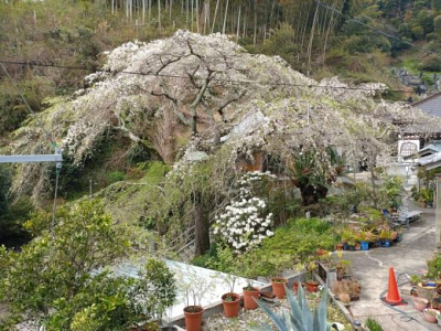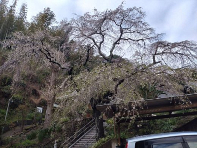 【令和6年枝垂れ桜開花状況】 ほぼ満開に近いですが昨晩の雨で散り始めてしまいました