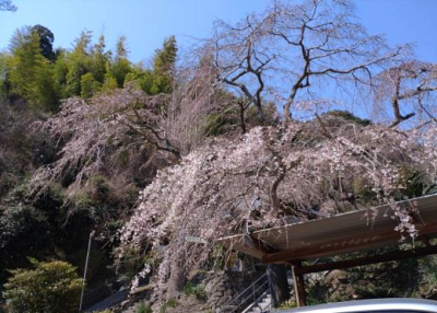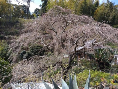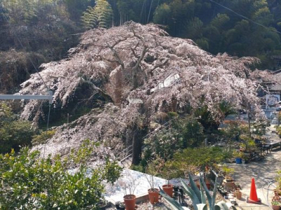 【令和7年枝垂れ桜開花情報】 今年の枝垂れ桜は昨年同様やっと一、二輪咲き始めたところです