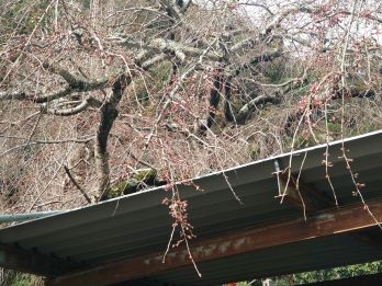 枝先に少しづつ咲きはじめました 【令和6年枝垂れ桜開花状況】