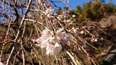 今年はやや遅めかもしれません。今時点で4、5分咲きといったところ。 枝先の葉芽も開きだしているの…