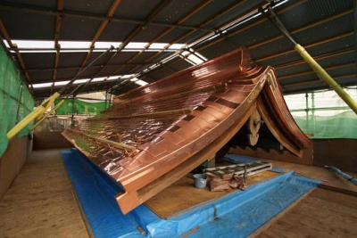 銅板、さらに広がりました。 屋根もいよいよ大詰めでしょうか。