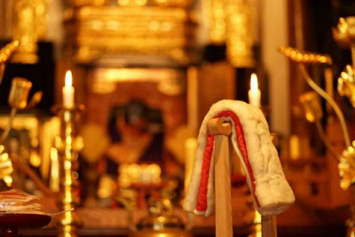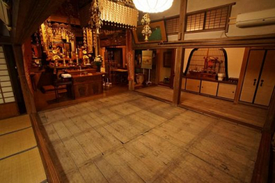お堂の畳、張替え中です。 畳が全部なくなった珍しい場面。
