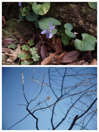 マンダラ堂とお寺の境内で気付きましたが、しだれ桜とスミレが数輪咲いております。 一度寒くなって…