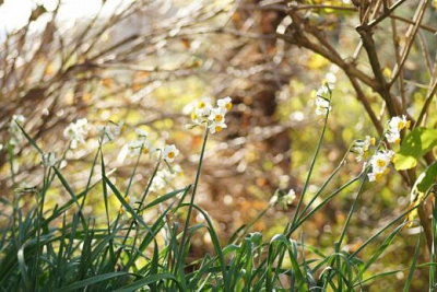 水仙が見頃を迎えております。 近くを通るといい香りです。 朝日に輝く水仙。