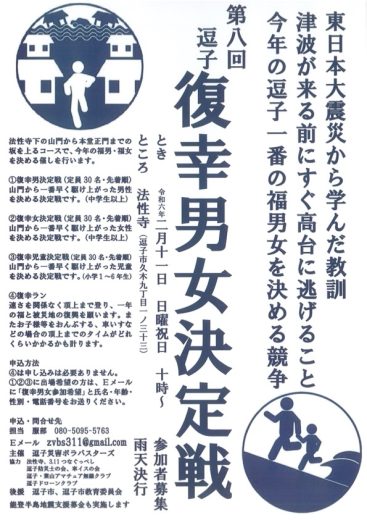 逗子災害ボラバスターズ様主催「第八回 逗子復幸男女決定戦」今年も開催します。 奮ってご参加く…