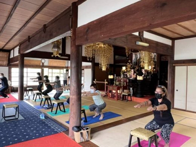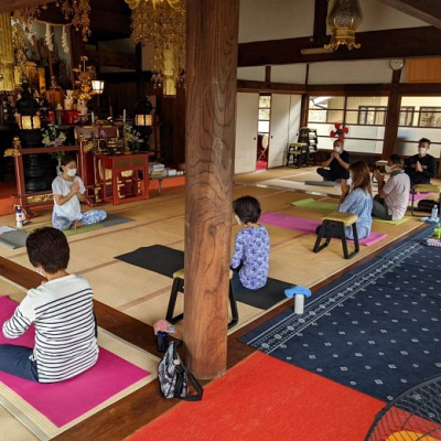 法泉寺で毎週金曜日、毎月第1土曜日に開催している「中高年のための健康ヨガ」です。 ※詳…