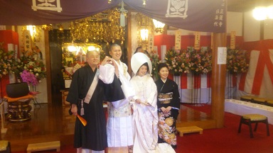 同じ法縁のお寺でもある市内井細田 正蓮寺様の長女 智子さんと角田暁韻上人の結婚式の怜倫としてお…