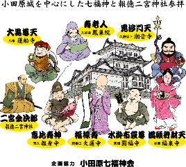小田原はお城を中心に発展してまいりました。小田原七福神は小田原城を中心として、東に弁才天、寿老…