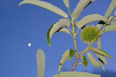 3月に植えた栗の木ですが、なんともう実をつけております。(一個だけですが) 桃栗三年柿八年とよ…