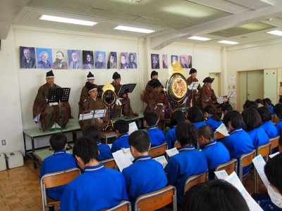 3月12日(火)小田原市立城南中学校にて雅楽の演奏を行って来ました。 演奏した曲は ①平調…