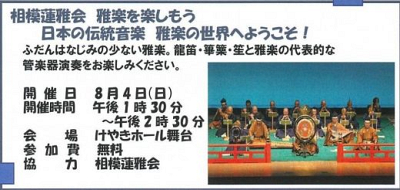 この度、『雅楽を楽しもう~日本の伝統音楽 雅楽の世界へようこそ!~』と題して、小田原…