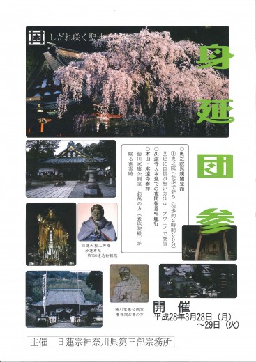 本年の宗務所主催の団体参拝は、日蓮大聖人が御入滅なされました大本山池上本門寺の参拝を中心として …