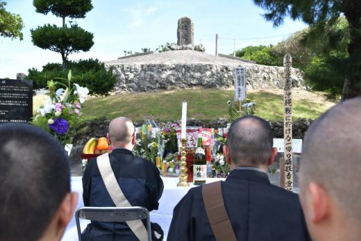 法要後、ひめゆりの塔よりも南側、海岸寄りに進んだ場所にある「魂魄の塔」に移動し、茂田井所長御導師のもと慰霊法要を行った。