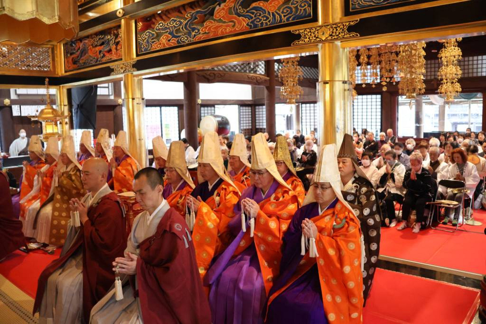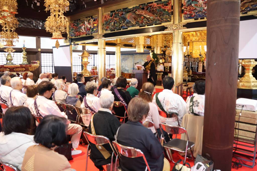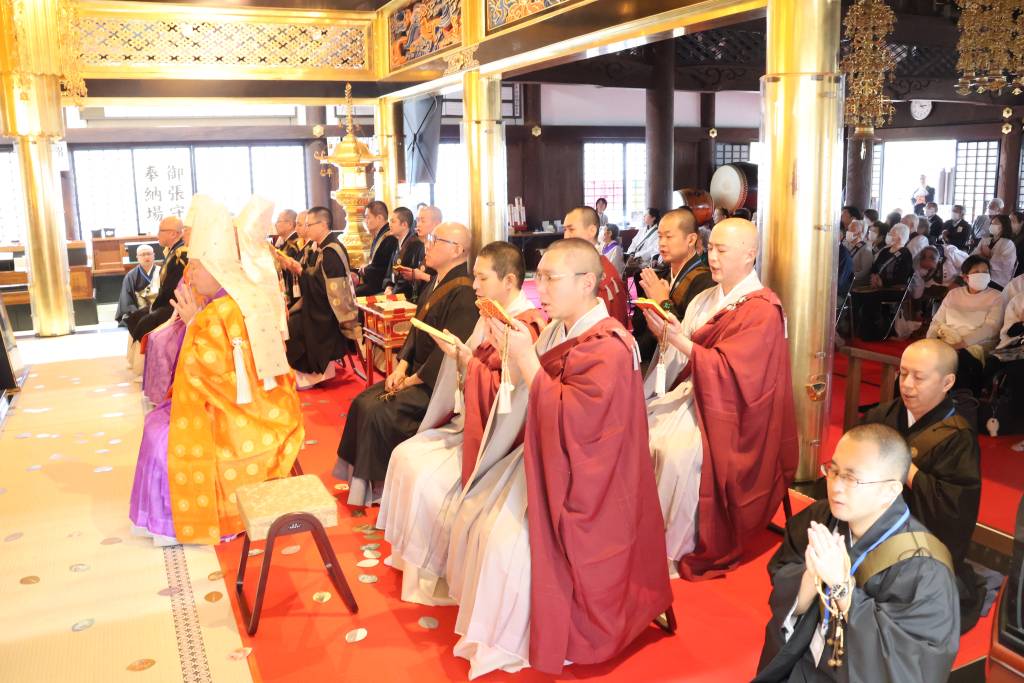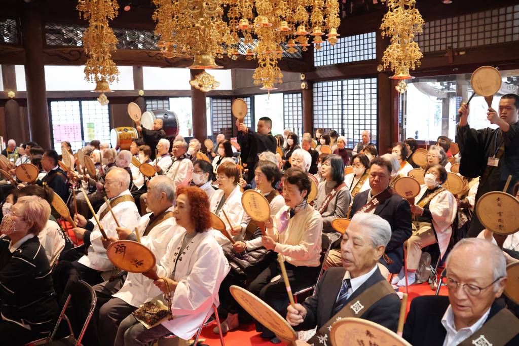 浅井信英師(東京都西部宗務所所長)が導師を務め、参加者は団扇太鼓を叩きながら一心にお題目を唱えた。また今回より参加出来ない檀信徒の祈願と回向を行った。法要の最後にはスクリーンにて当日参加者の名前を記載したエンドロールを上映し、報恩読誦を厳修した。参加者からは「自分の名前が映し出され、法要に参加したことを改めて実感することが出来た」と喜びの声があった。