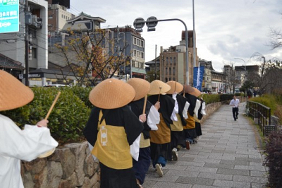 12月15日(木)宗務所(橋本一妙所長)主催の歳末助け合い唱題行脚が京都立正平和の会の僧侶ととも…