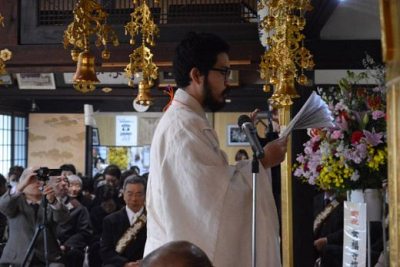 京都府綾部市常福寺(水野信道住職)にて2月15日(土)水野裕喜副住職の第初行成満帰山奉告式が営ま…