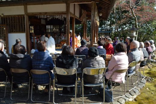 12月14日、太陽の陽を温かく感じる中、洛陽十二支妙見会(道入寺住職風間隨成会長)による洛陽十二支妙見宝剣引継ぎ大祭が「岩戸妙見宮」で知られる京都市北区円成寺(大岩泰俊住職)で僧俗約70名が参拝し行われた。法要に先立ち、妙見会各聖による水行が行われ、檀信徒が合掌し見守った。