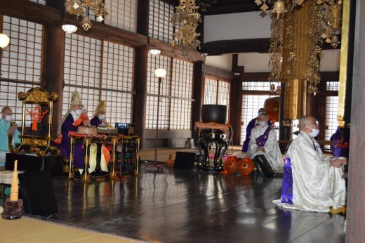 師の下、厳かに法要が執り行われた。「宗祖の誓願を受け継ぐこと我らの使命」と上田貫首は慶讃文で述べられ、世の中が乱れているときこそ法華経・南無妙法蓮華経の正しい信仰が広まることを心から祈願された。京都日蓮宗門下連合会理事長 橋本一妙上人は「我々は仏子の一人としてお題目を唱え、お題目でこの世を明るくして参りたい」と閉式之辞で力強く述べられた。