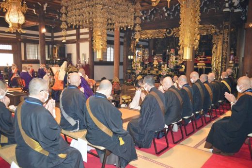 法要では、理事長の中川法政宗務総長が結願文を力強く奉読され、日蓮門下が一同に一心に合掌しお題目を唱えた。
