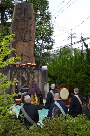 4月14日(木)京都市山科区日ノ岡宝塔にて、京都府第一部宗務所所長橋本一妙師を導師に春季霊位追善供養が関係者並びに僧侶が集まり営まれた。