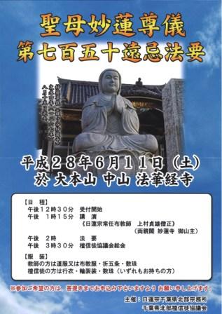 《聖母妙蓮尊儀第750遠忌法要》 平成28年6月11日(土) 於 大本山 中山 法華経寺 本年は日…