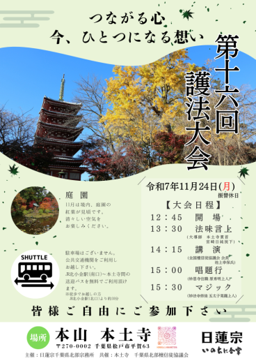 来る11月24日(月)※振替休日 本山本土寺にて 日蓮宗千葉県北部宗務所による第16回護法大…