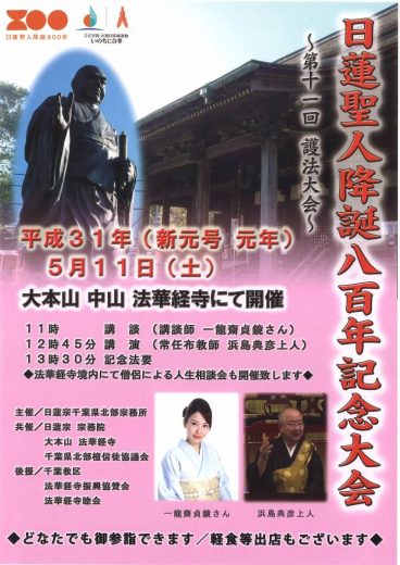 来る5月11日(土)大本山中山法華経寺にて 日蓮聖人降誕800年記念大会が行われます。 11時ʍ…