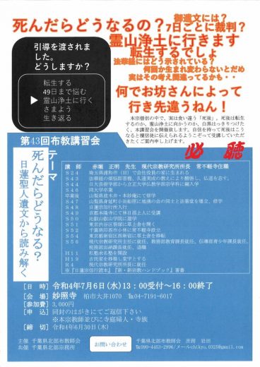 自信を持って死後はこうなると檀信徒に伝えられるようこぞって受講していただきたくご案内申し上げます。
