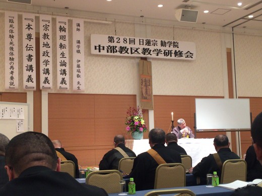 平成28年 第28回「中部教区教学研修会(勧学院)」 ブログ 記事公開日:2016年11月17日 この記事は最終更新日から1年以上経過しています。記事の内容やリンク先については現在と状況が異なる場合がありますのでご注意ください。 平成28年11月16日、17日の二日間にわたり「第28回 中部教区教学研修会(勧学院)」が当番管区の尾張にて開催されました。 16日は講師に講学職の伊藤瑞叡先生をお迎えし「本尊伝書講義」「輪廻転生論講義」「宗教地政学講義」「臨死体験・死後体験の再考要説」と題した講義を。17日は講師に講学職の寺尾英智先生をお迎えし「日蓮宗における諸尊の造立」と題した講義を行なって頂きました。 この記事は最終更新日から1年以上経過しています。記事の内容やリンク先については現在と状況が異なる場合がありますのでご注意ください。 PREV NEXT 一覧へ