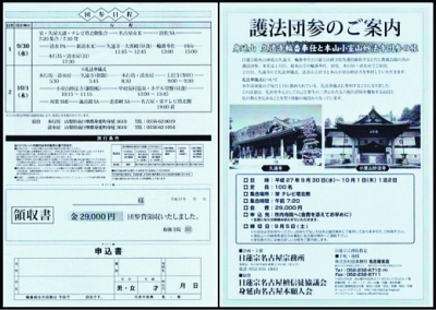 平成27年度、名古屋宗務所主催「護法団参」が決定しましたのでご案内致します。 期 日 平…