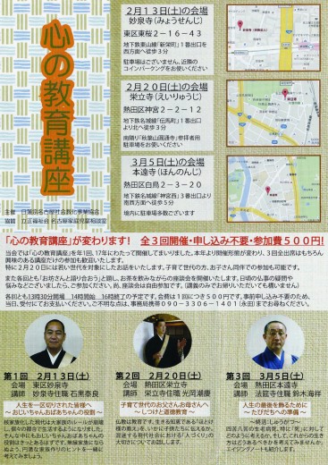 名古屋社会教化事業協会では2月13日(土)に「第1回 心の教育講座」を、以下のように開催いたし…