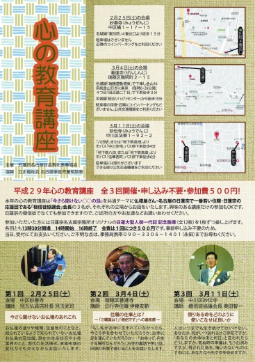 本年の「心の教育講座」は「今さら聞けない○○の話」を共通のテーマに仏壇屋さん・名古屋の日蓮宗で一…