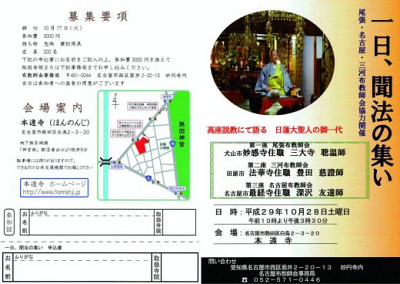 名古屋、尾張、三河布教師会協力のもと、一日心静かにお説教を聴聞する「一日、聞法の集い」が開催さ…