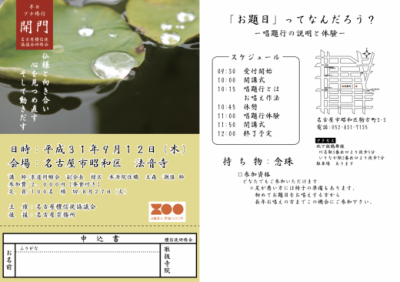 日時 令和元年9月12日(木) 9:30 受付開始 10:00 …