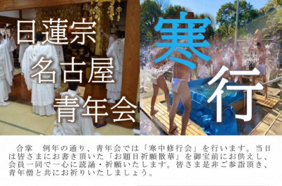令和4年度の寒中修行会は令和5年1月21日(土)に名東区本成寺に於いて行われます。 コロナ禍で…