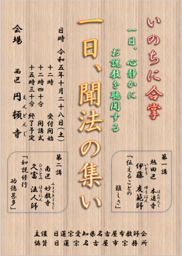 【開催日:2023年10月28日】 ゆったりとお説教を聴聞してみませんか? 本年も、名古屋…