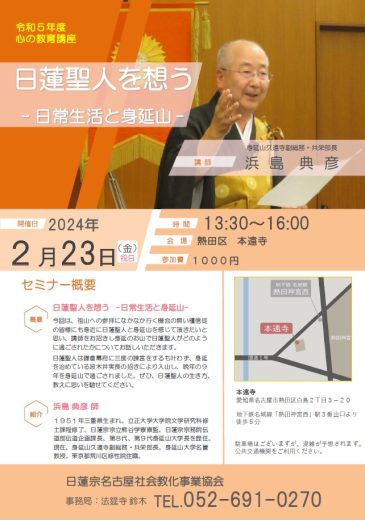 令和5年度 心の教育講座 「日蓮聖人を想う」~日常生活と身延山~ 日 時 2月23日(…